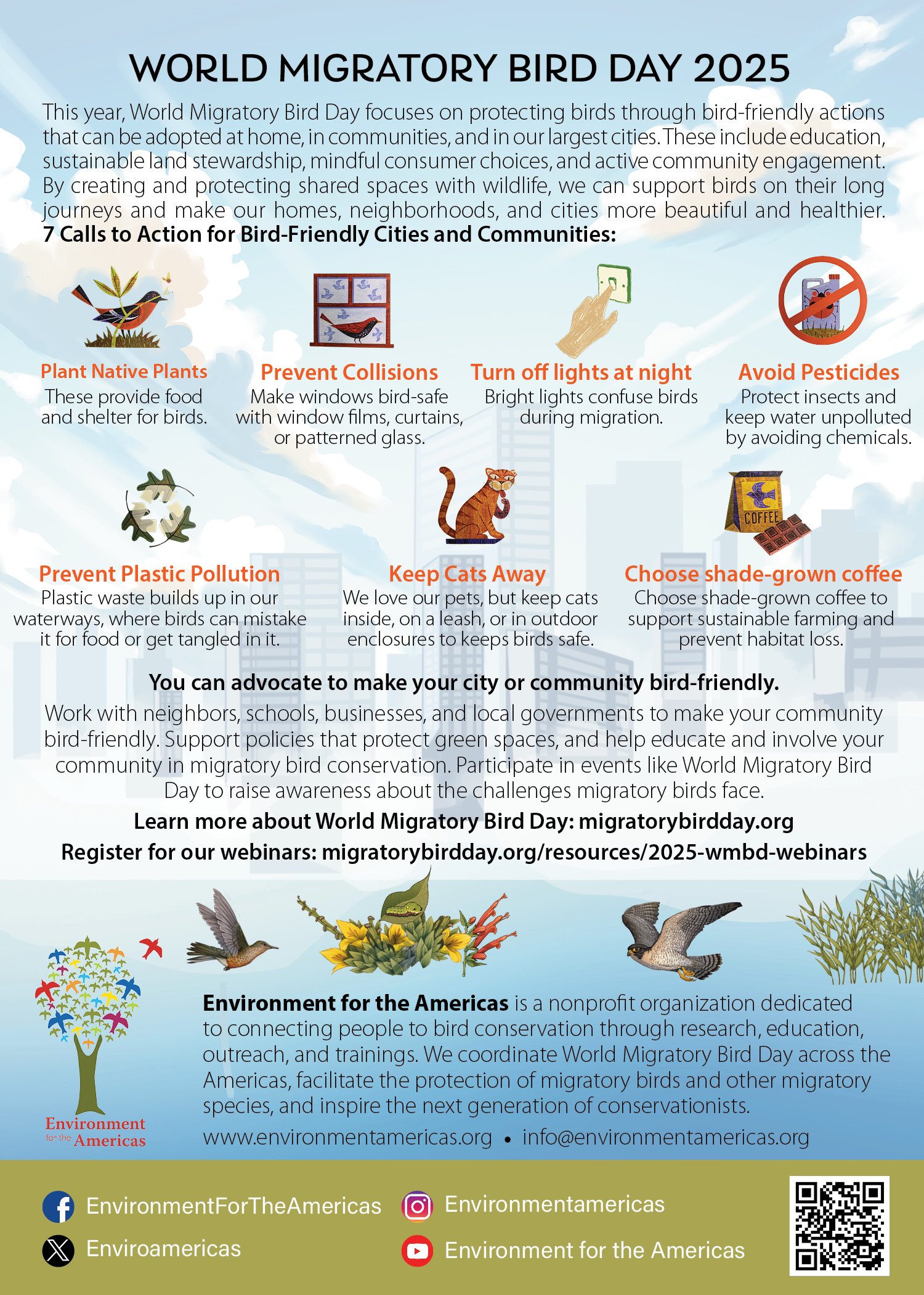 - Topics offered focus on birds, human-caused bird threats, and what we can do to help!